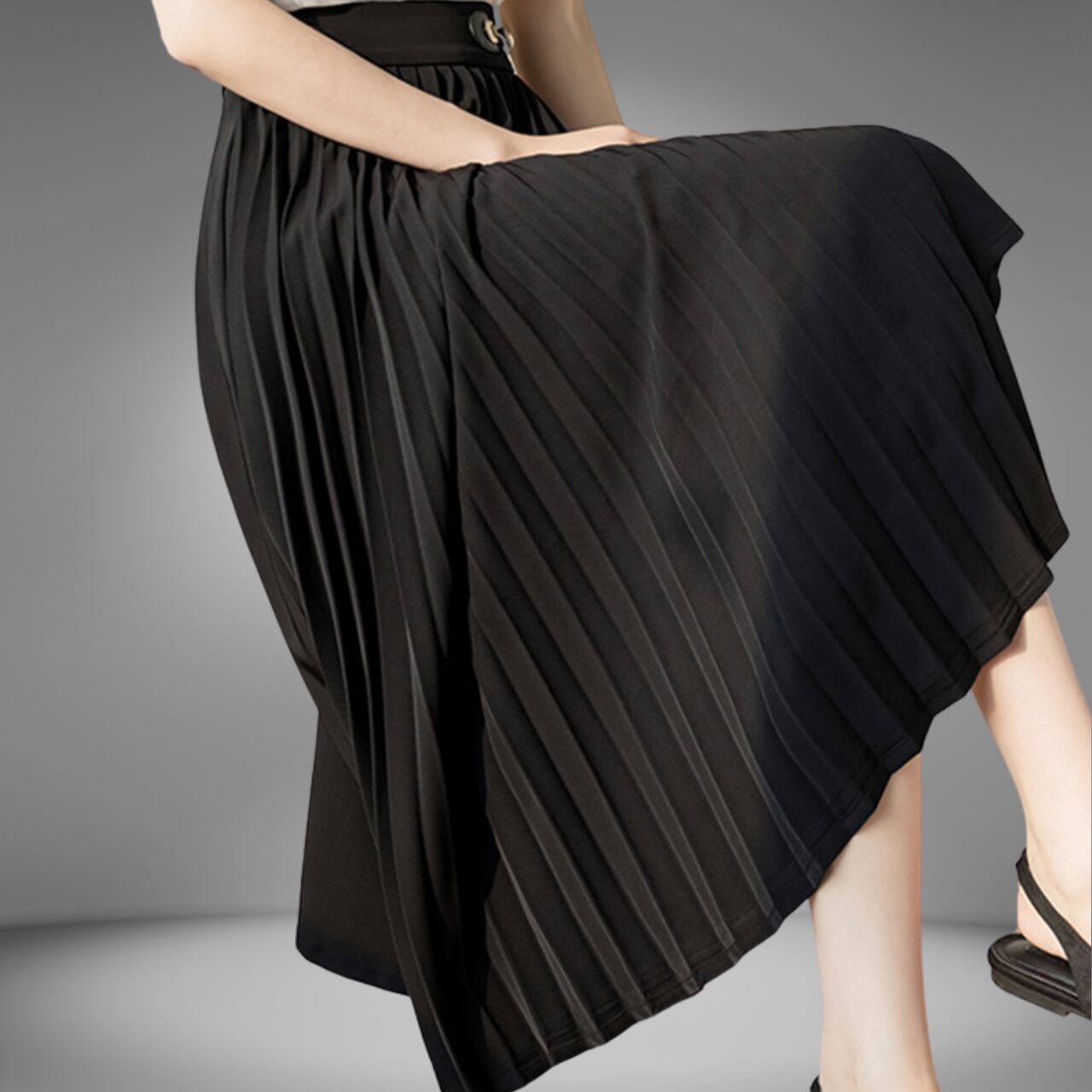 ハイウエストウエストプリーツミディスカート(2color) A0982