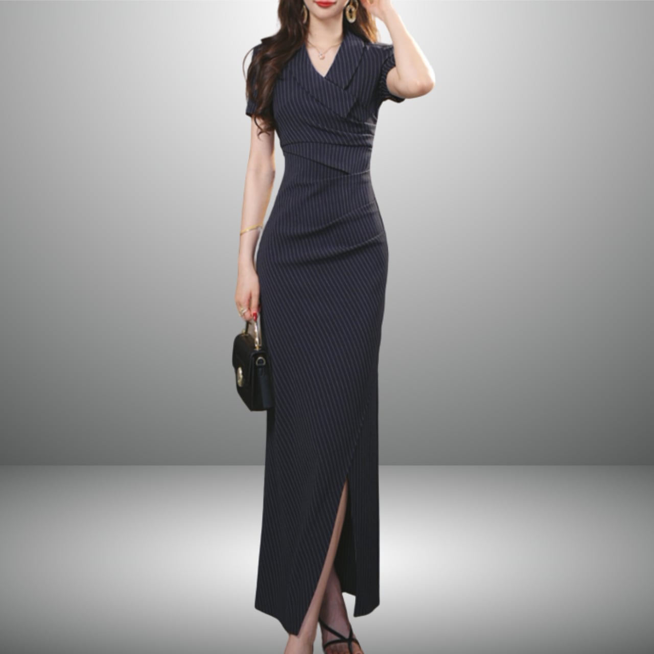 Vネックストライプワンピース A1032