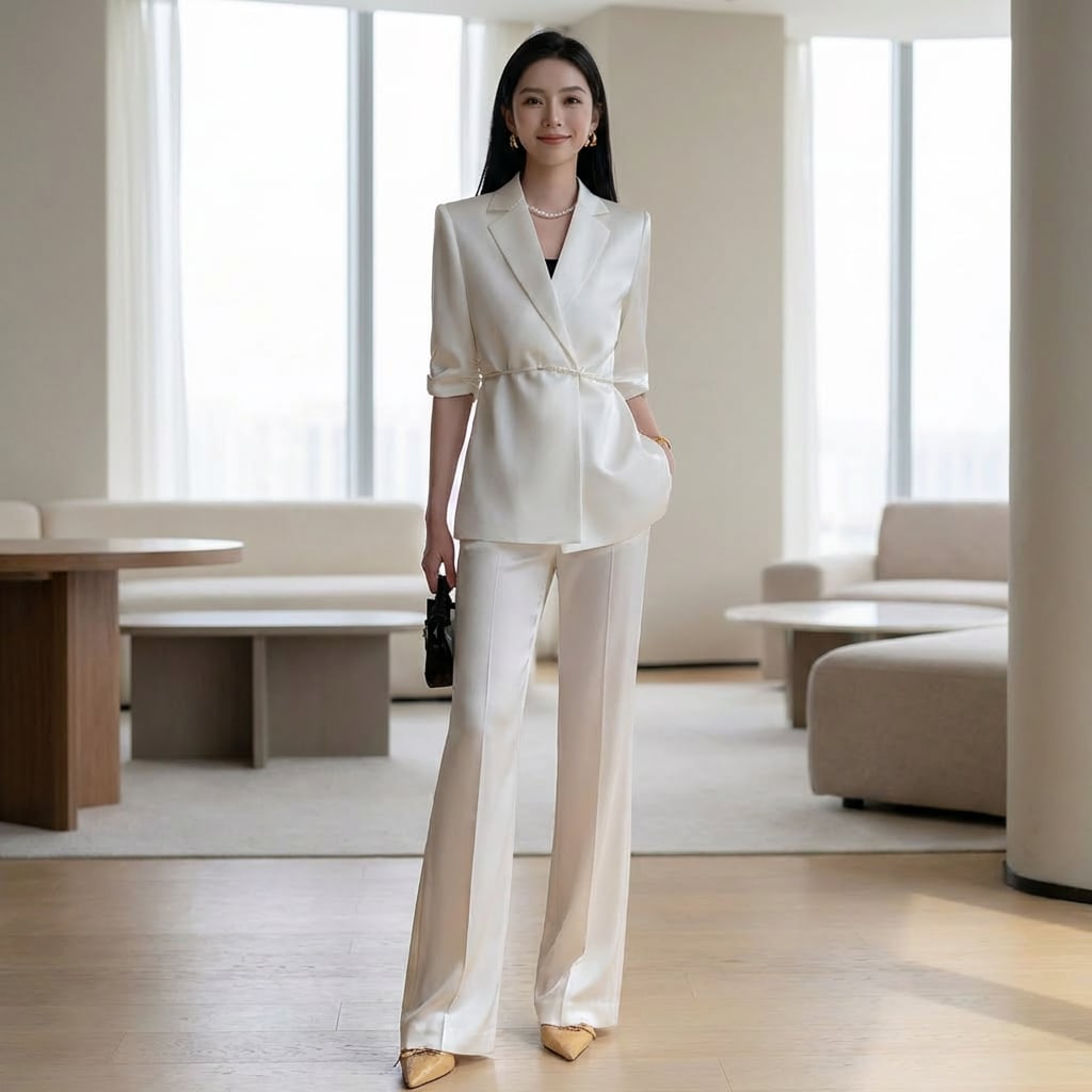 7分袖テーラードジャケットandパンツセットアップ(2color) A1039