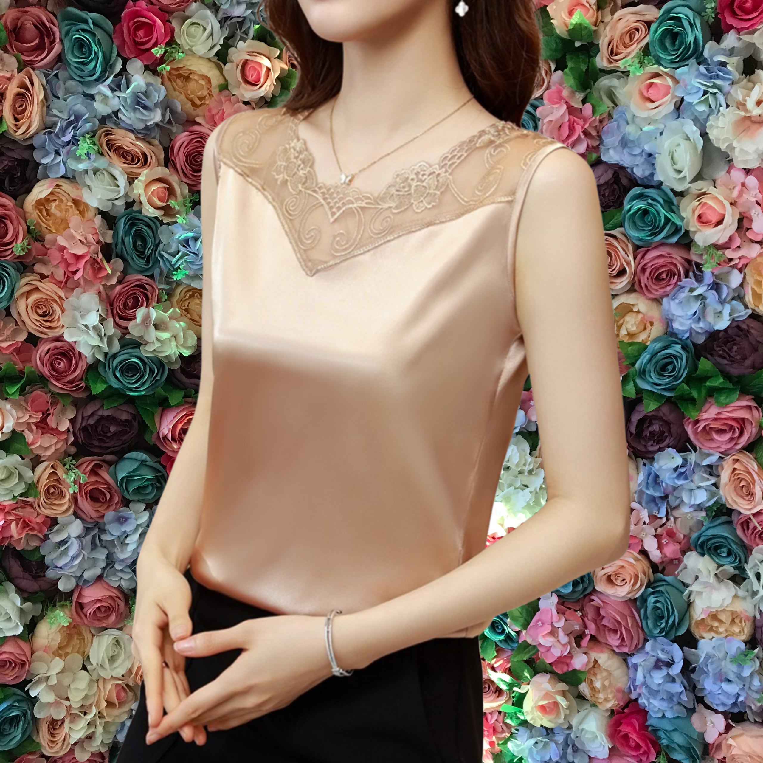 Vネックレースノースリーブシャツ(4color) A1044