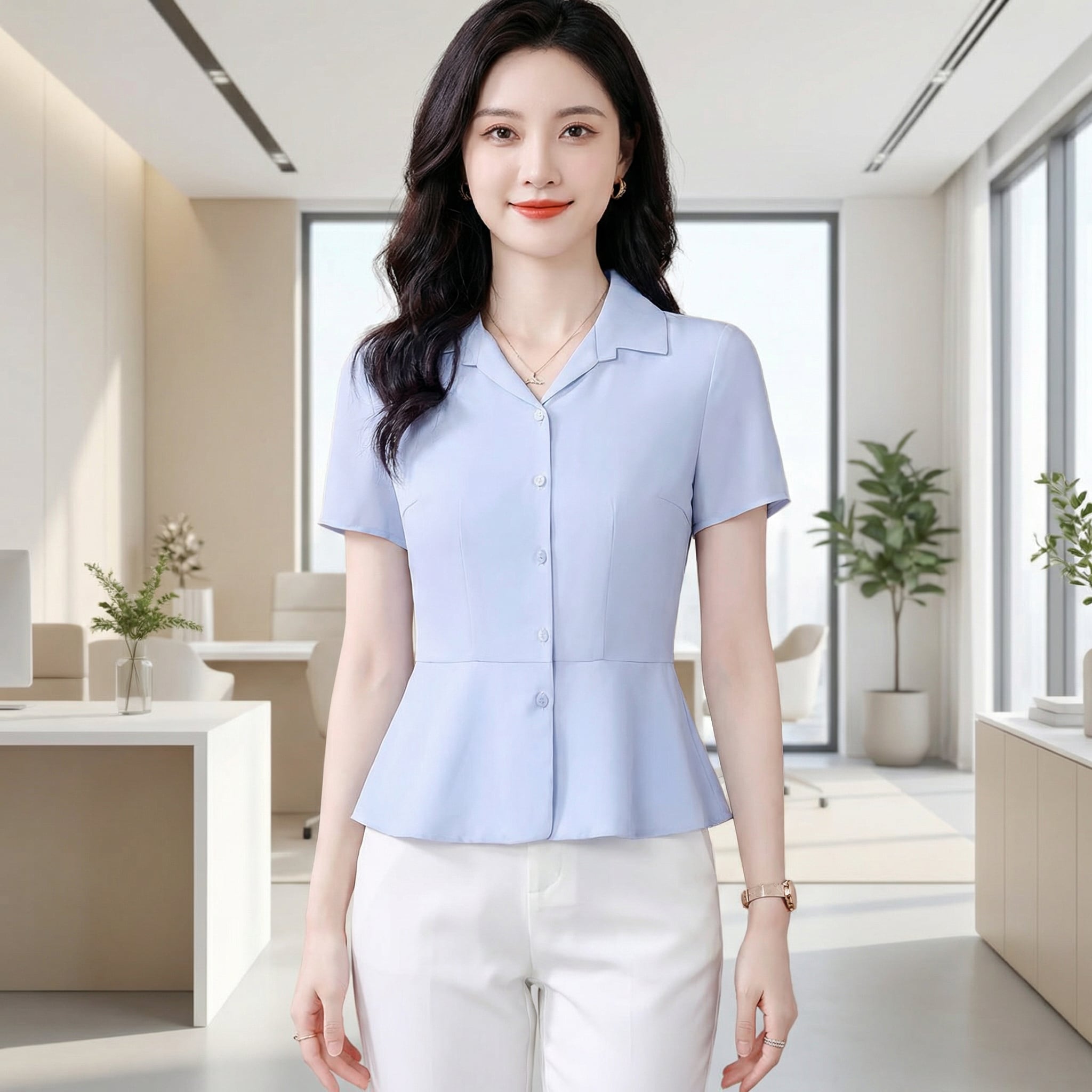 クルーネックフロントボタンシャツ(2color) A1048