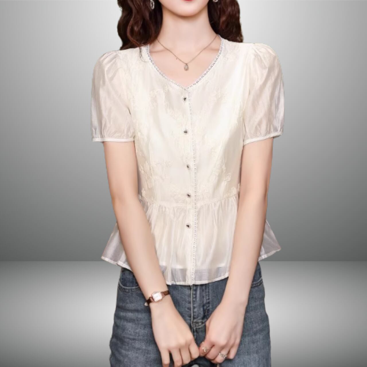 Vネックペプラムブラウス A1046