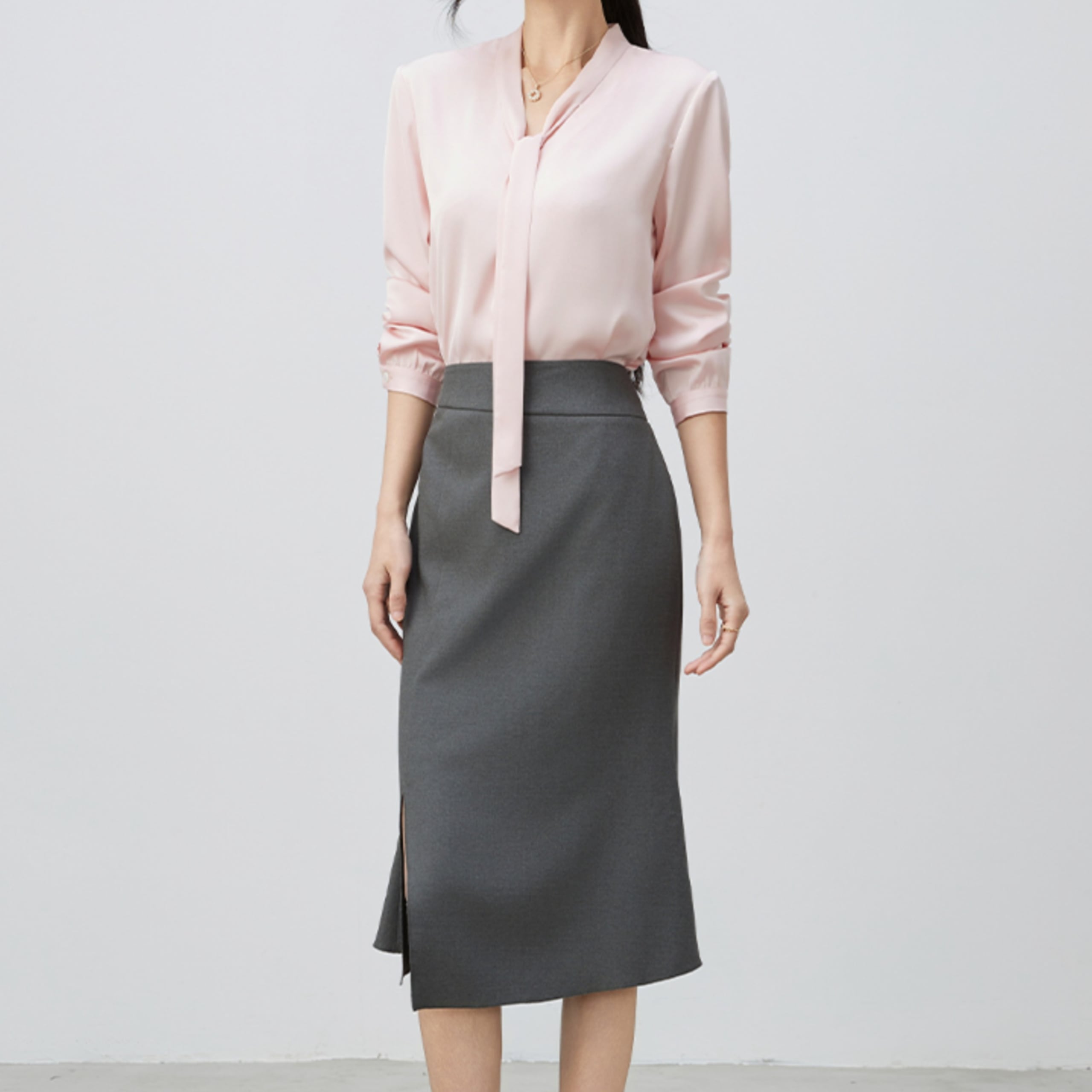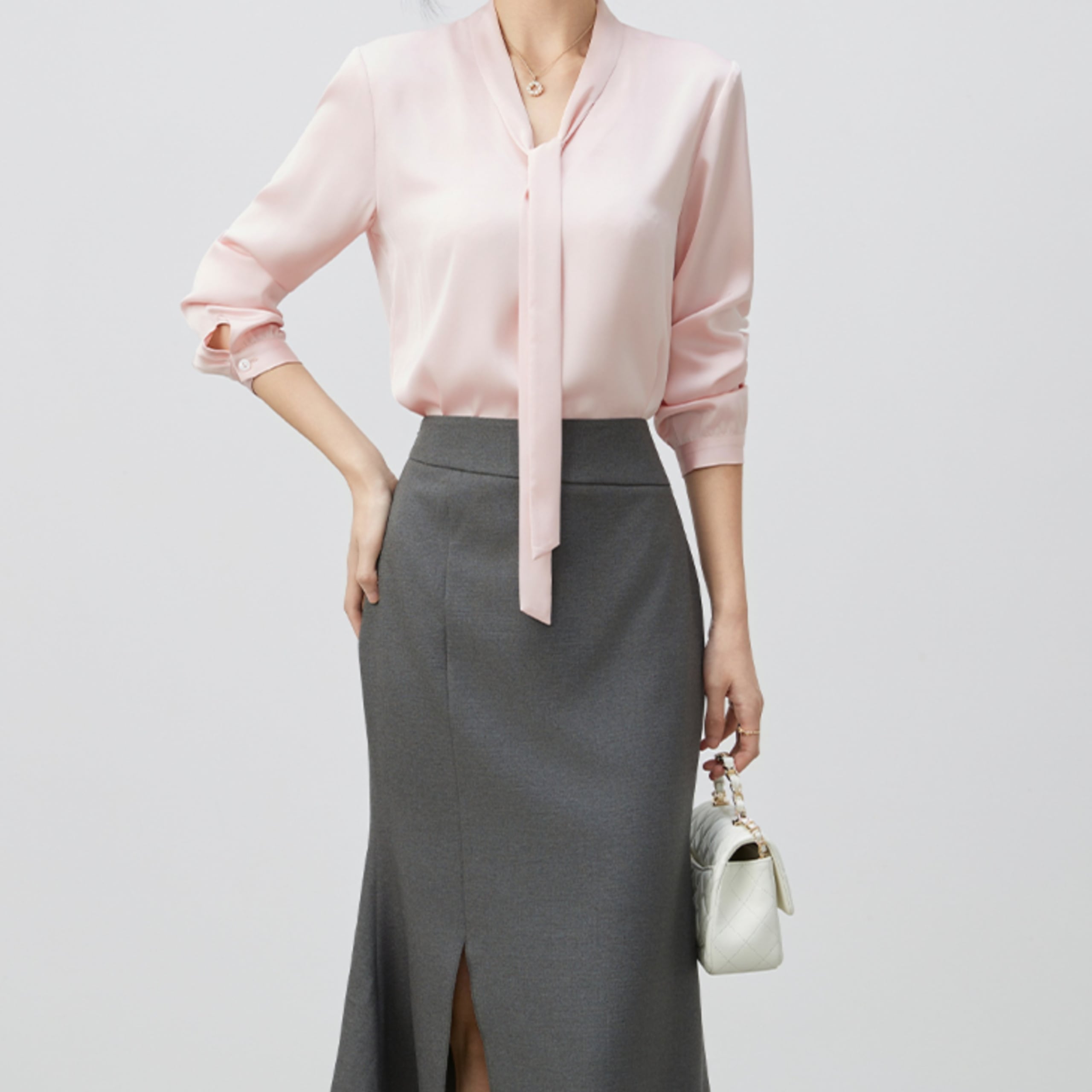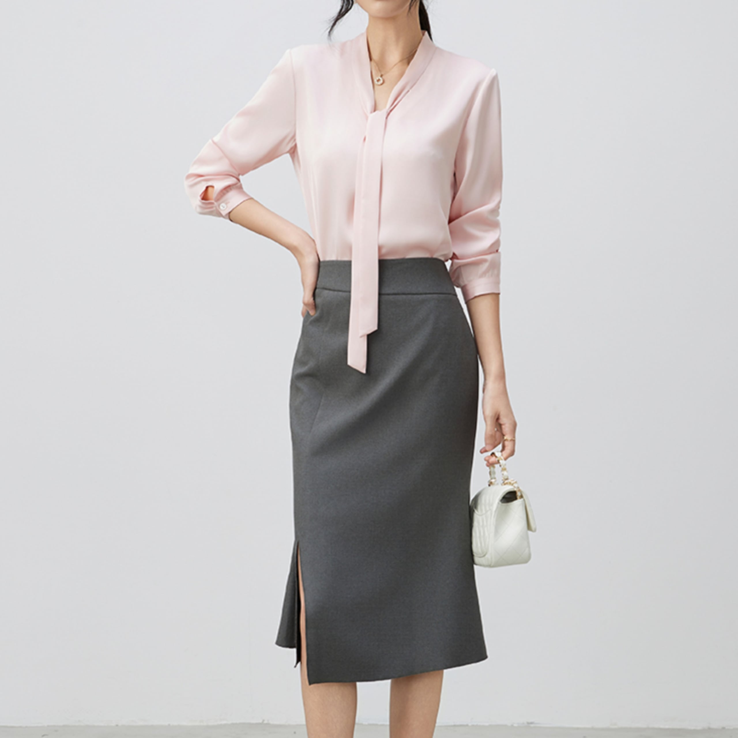 Vネックボウタイブラウスandマーメイドスリットスカートセットアップ(4color) A1014
