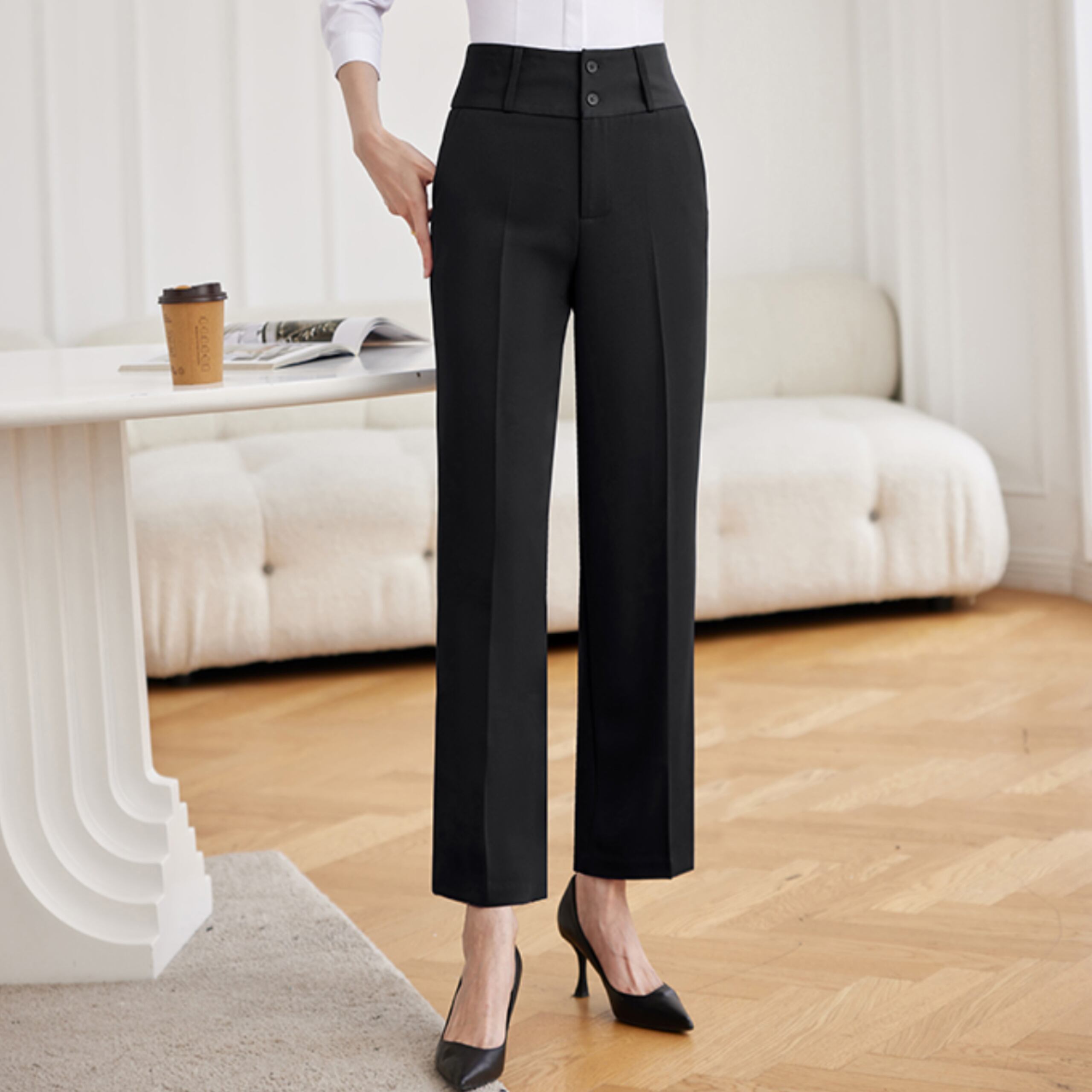 ストレートレッグハイウエストスーツパンツ(2color) A1128