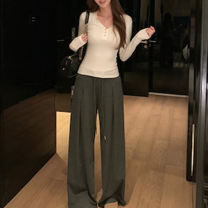 スラックスやデニム、タイトスカートまで幅広く合わせやすく、きれいめカジュアルに活躍します。