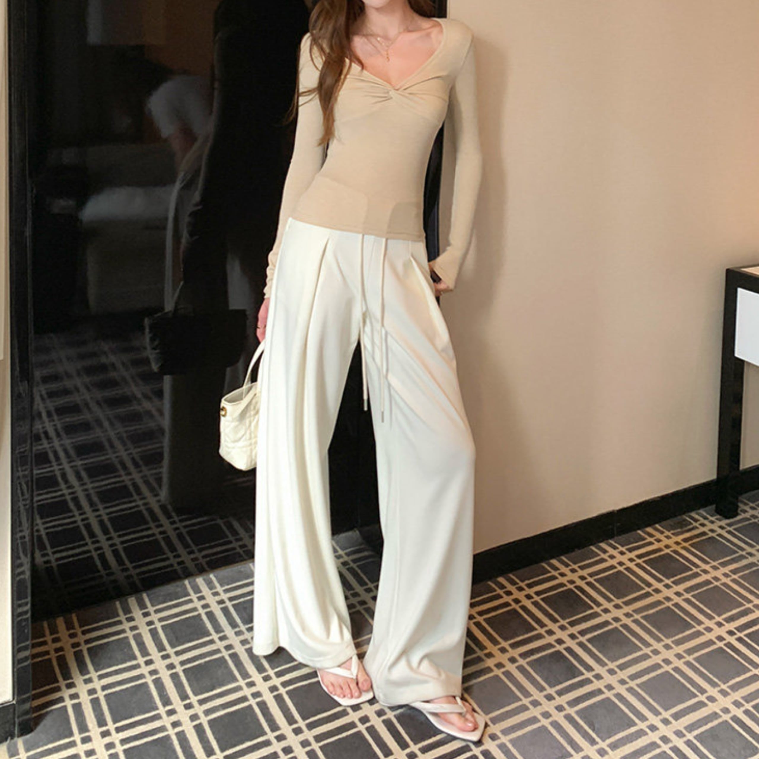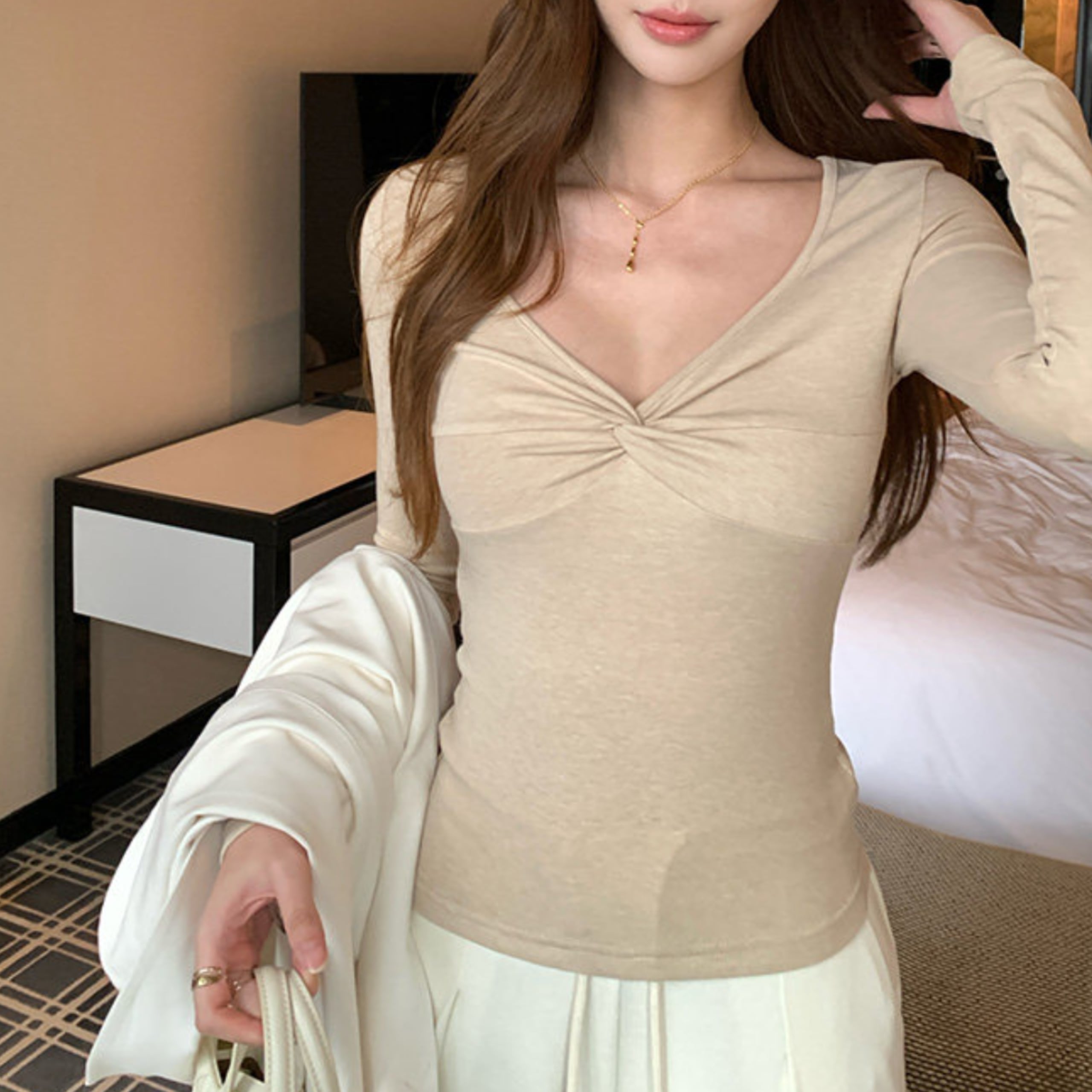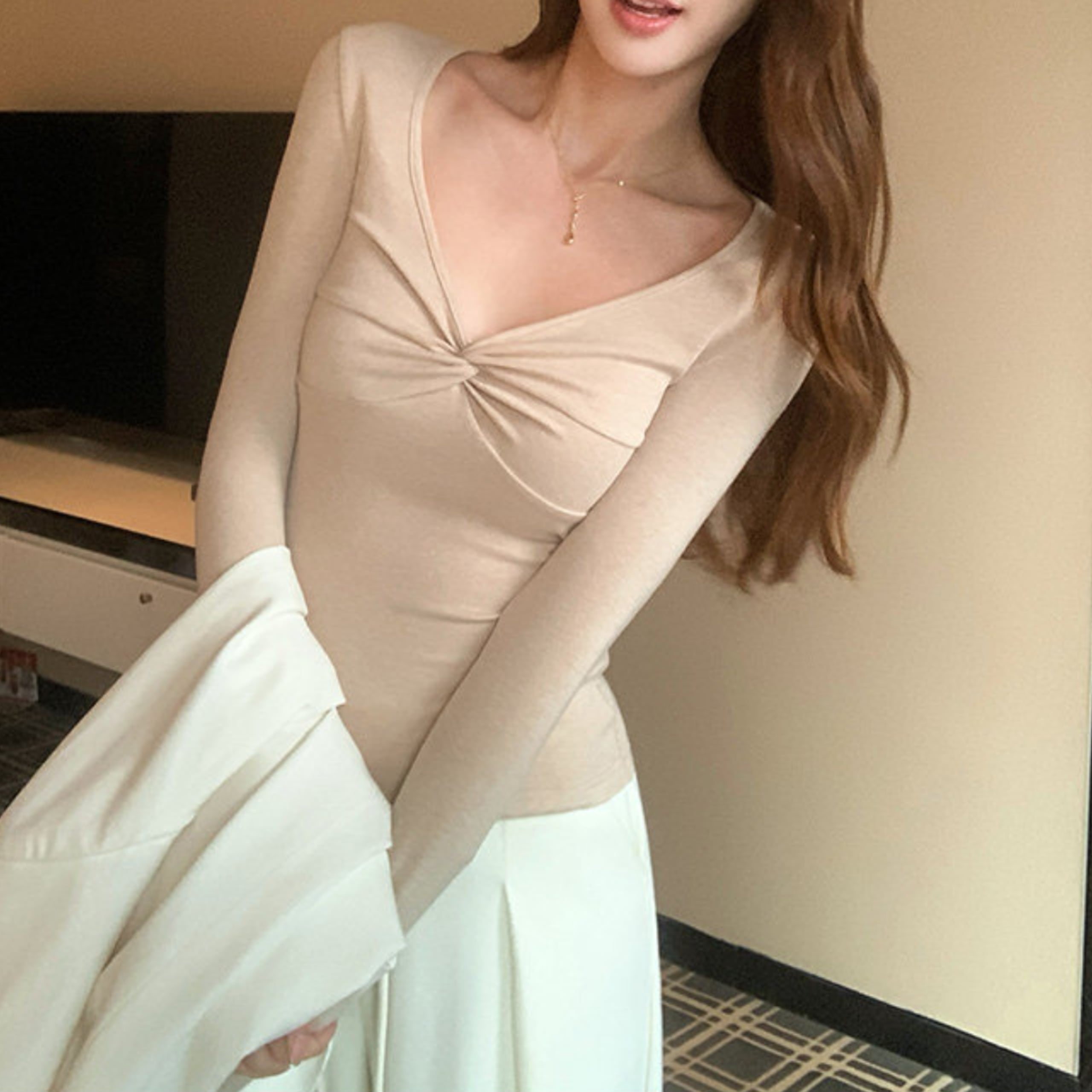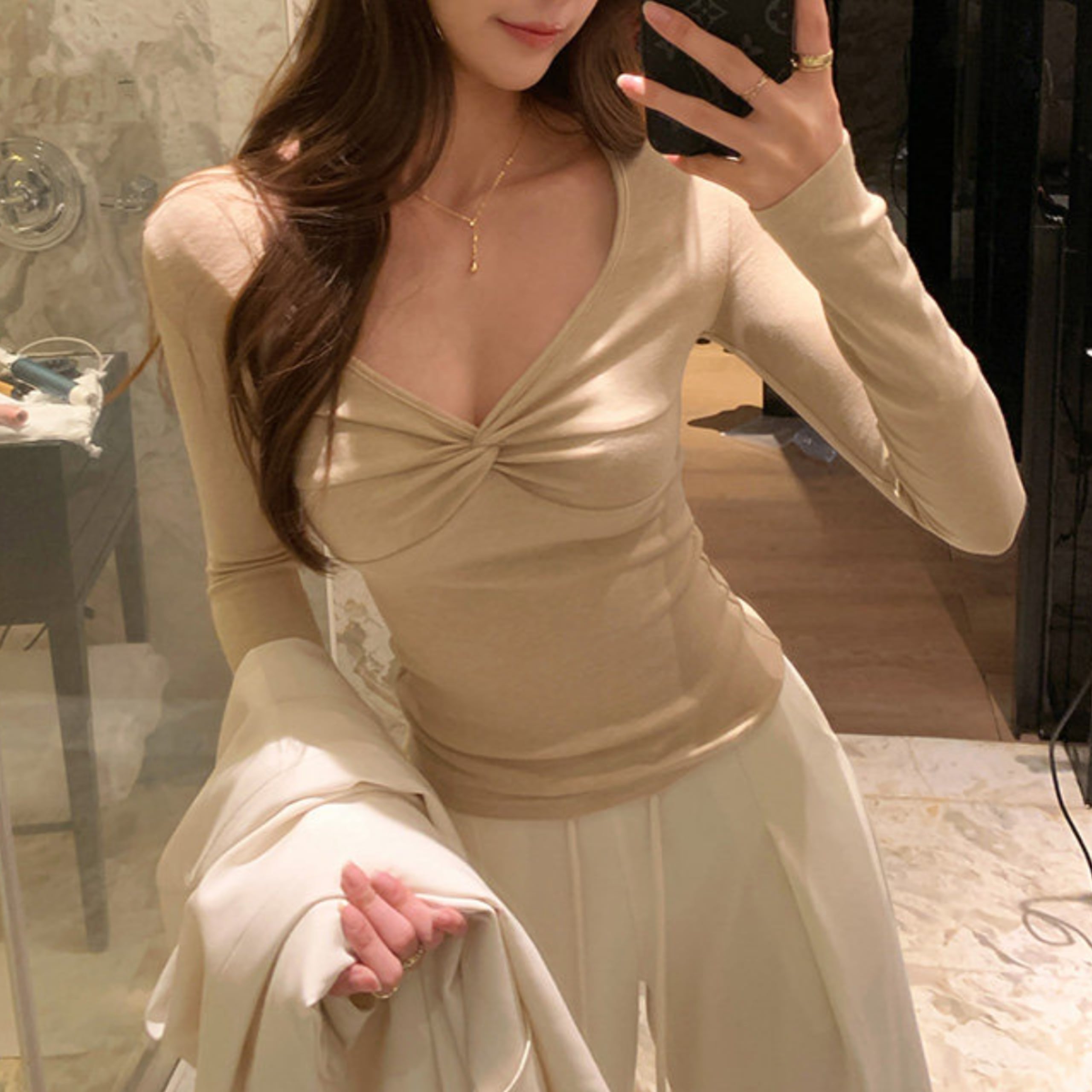 女性らしい立体感を美しく引き立てる長袖トップス。