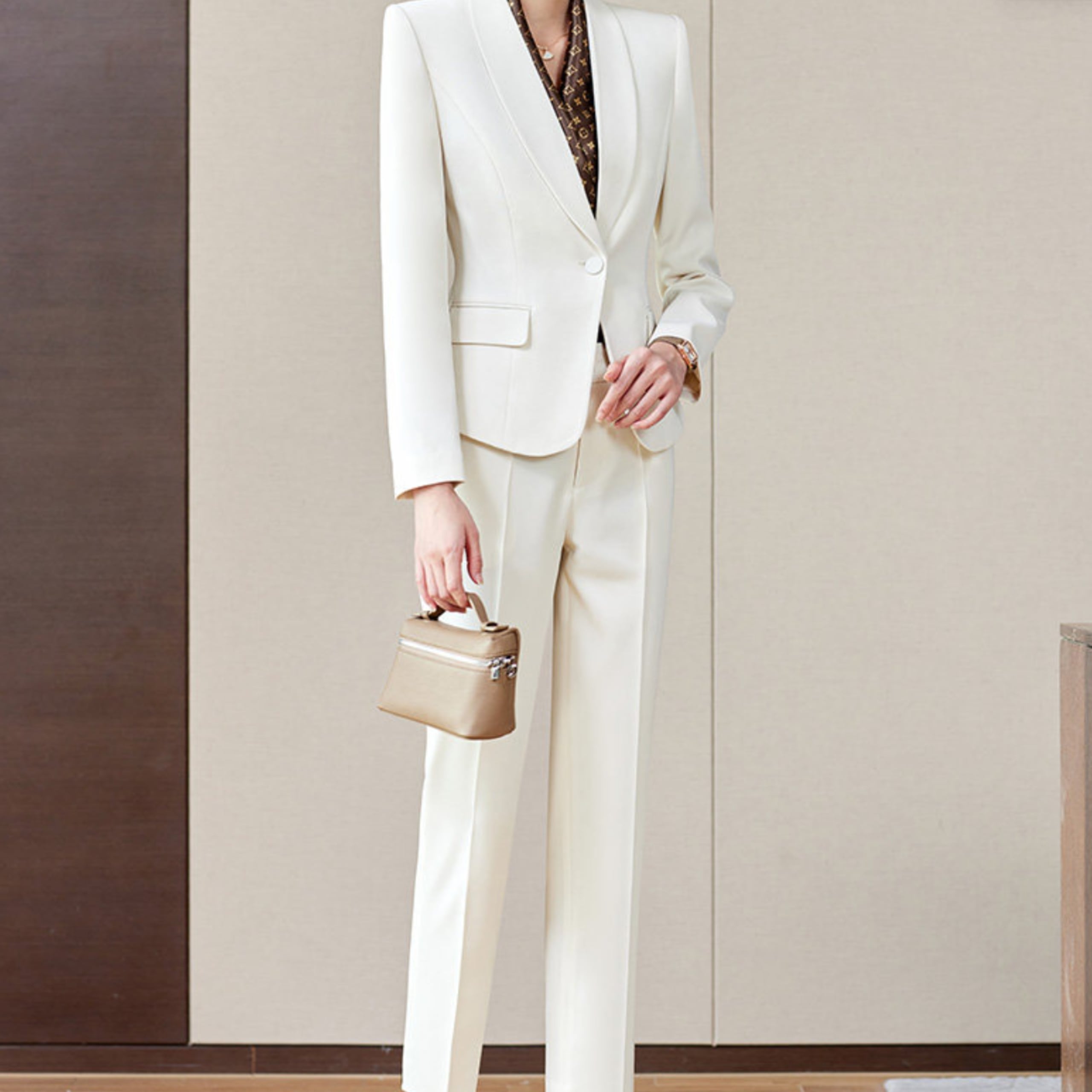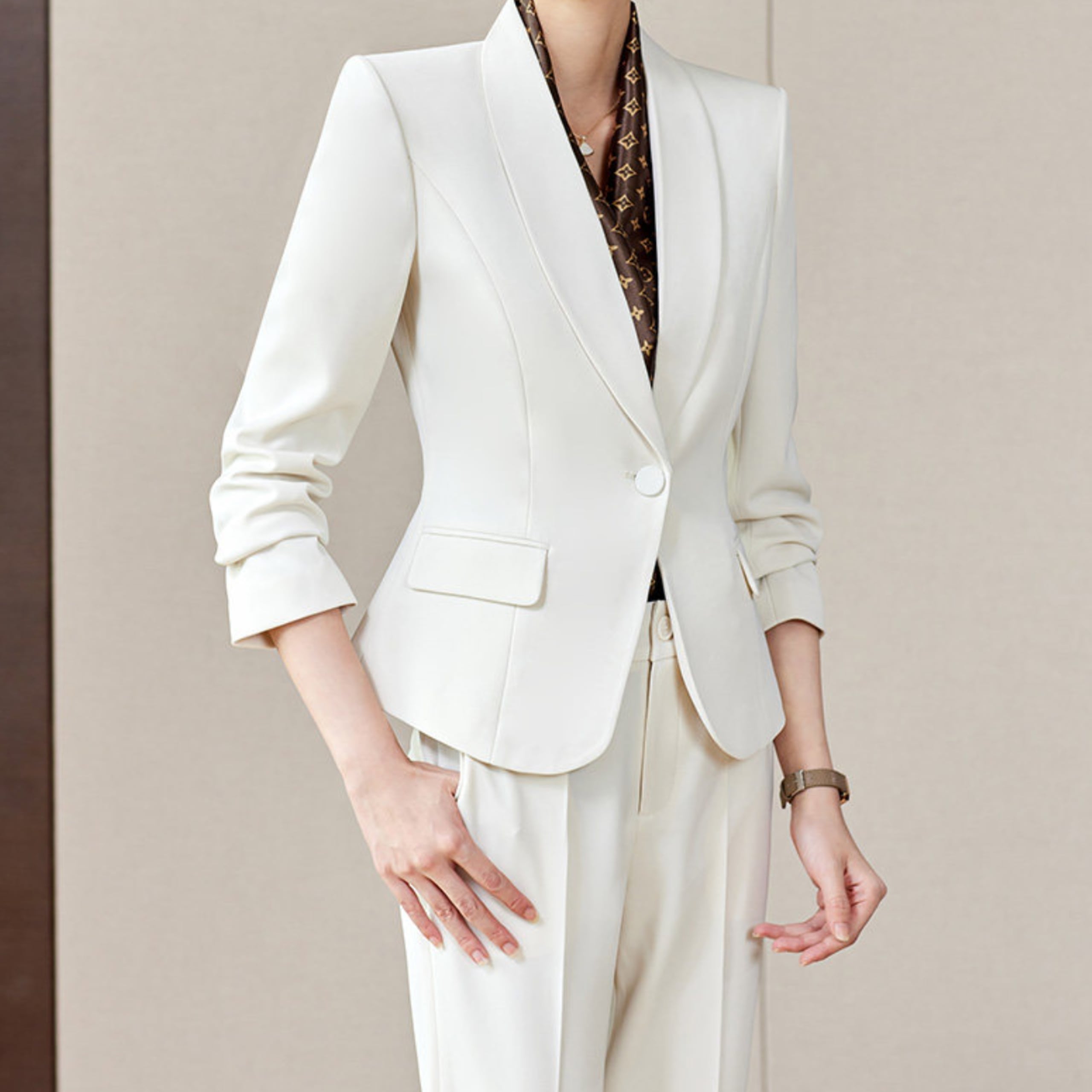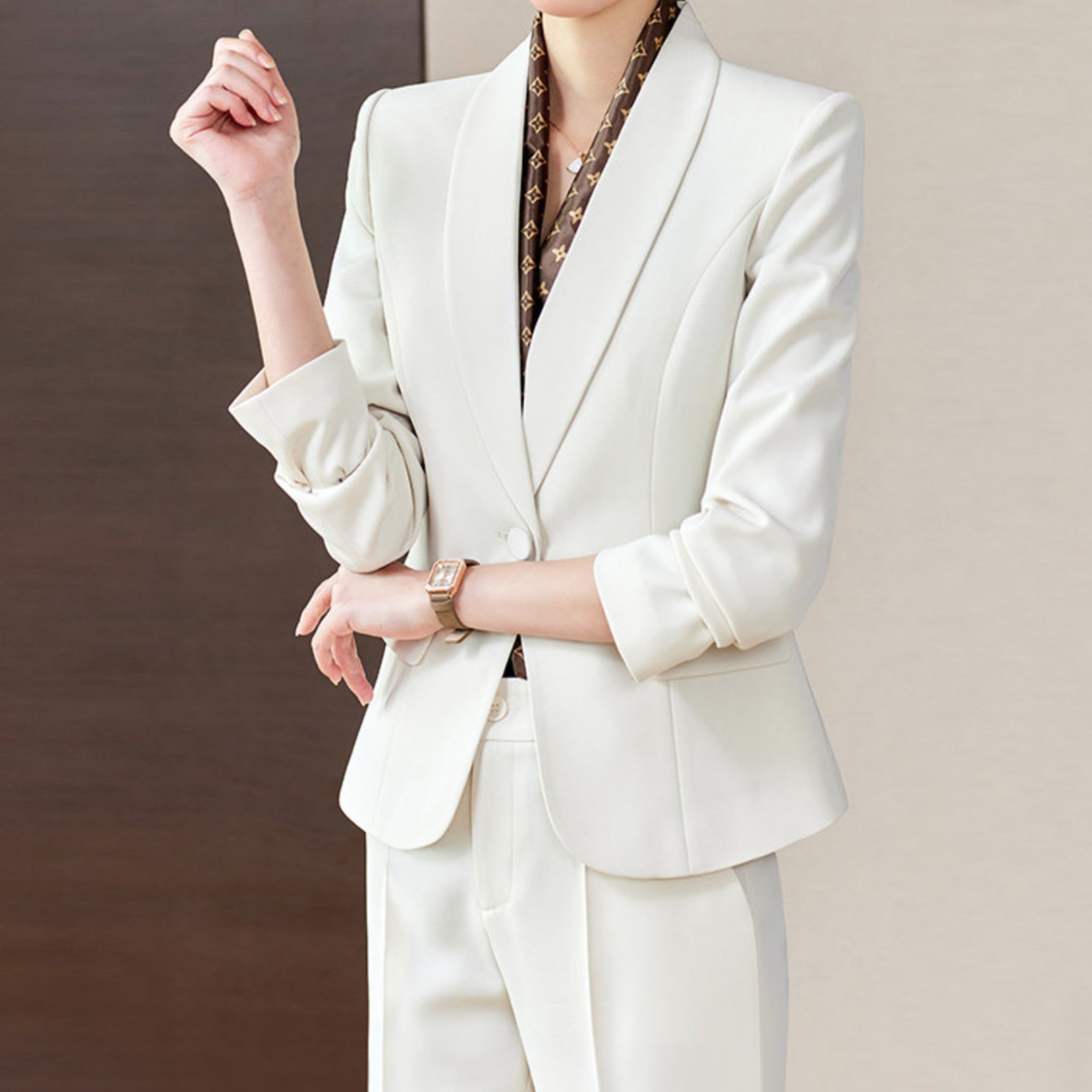 女性らしい柔らかさを兼ね備えたレディーススーツ。