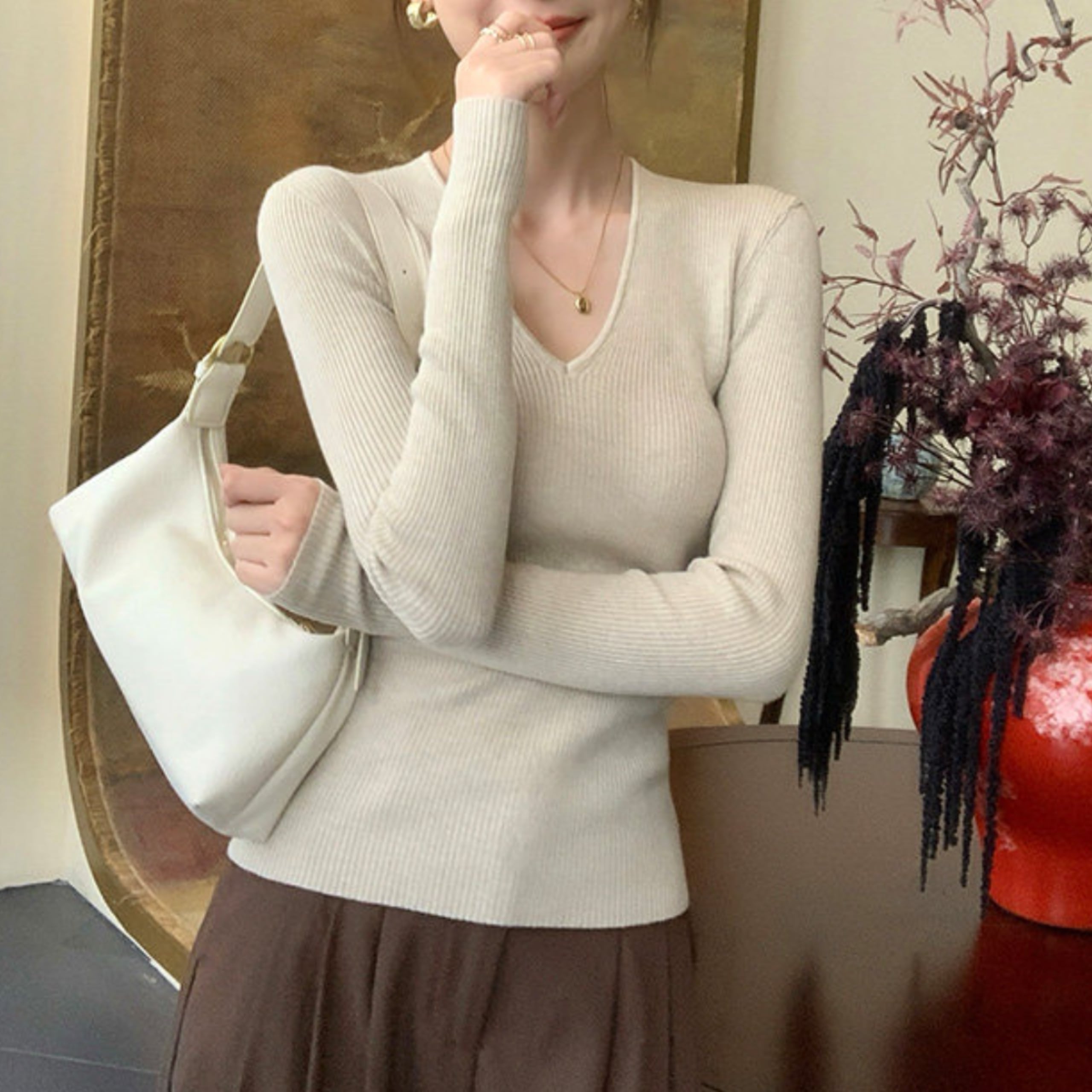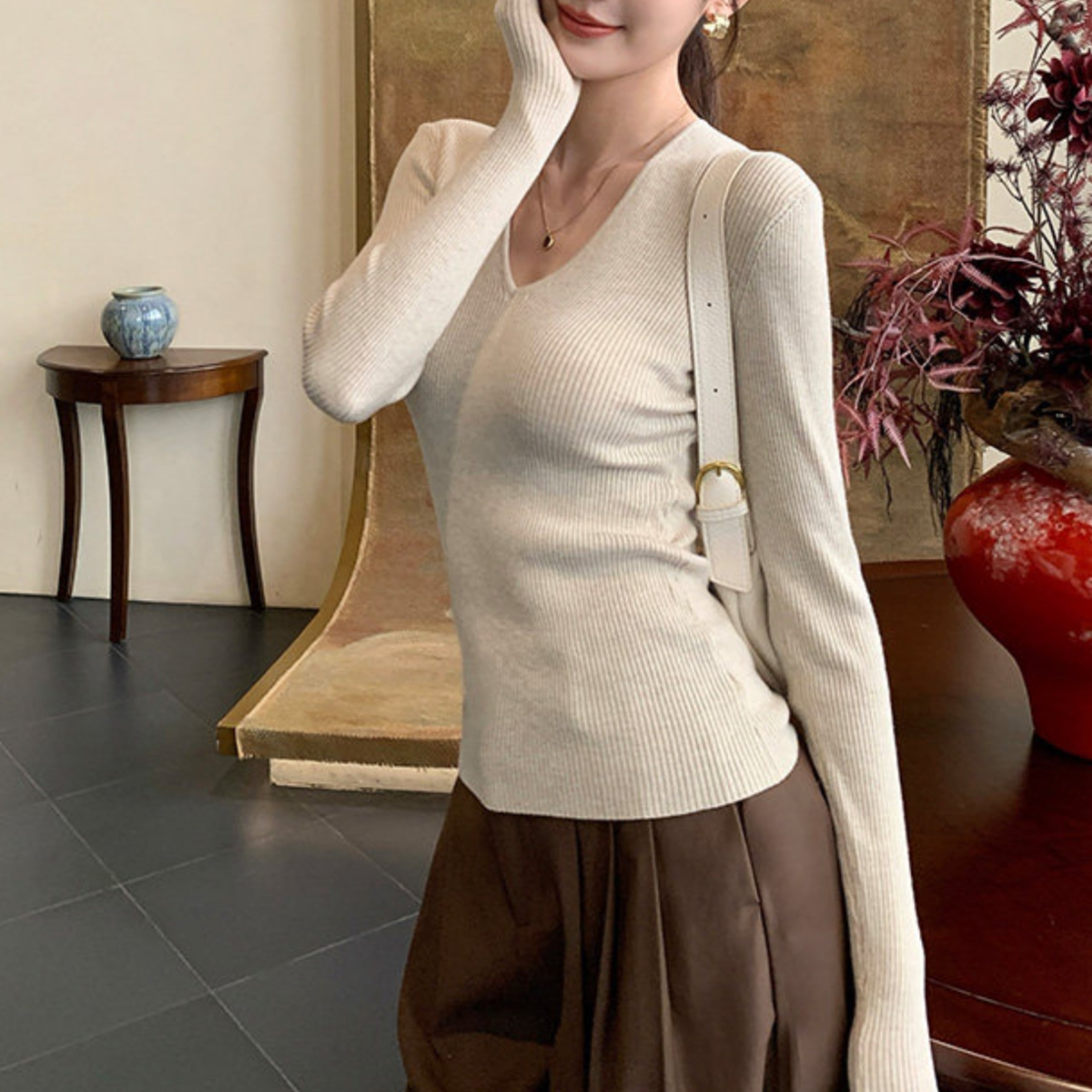ジャケットやカーディガンのインナーとしても活躍。
