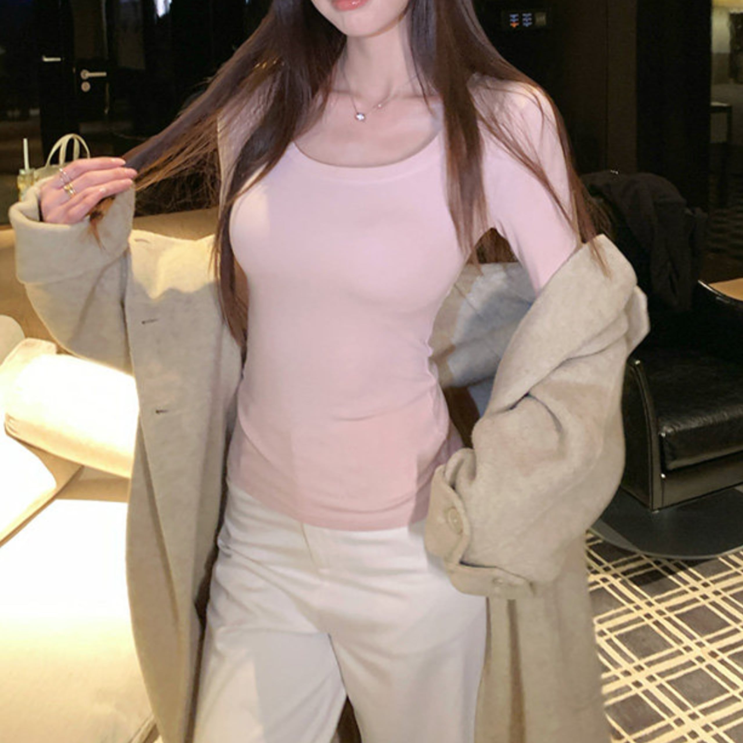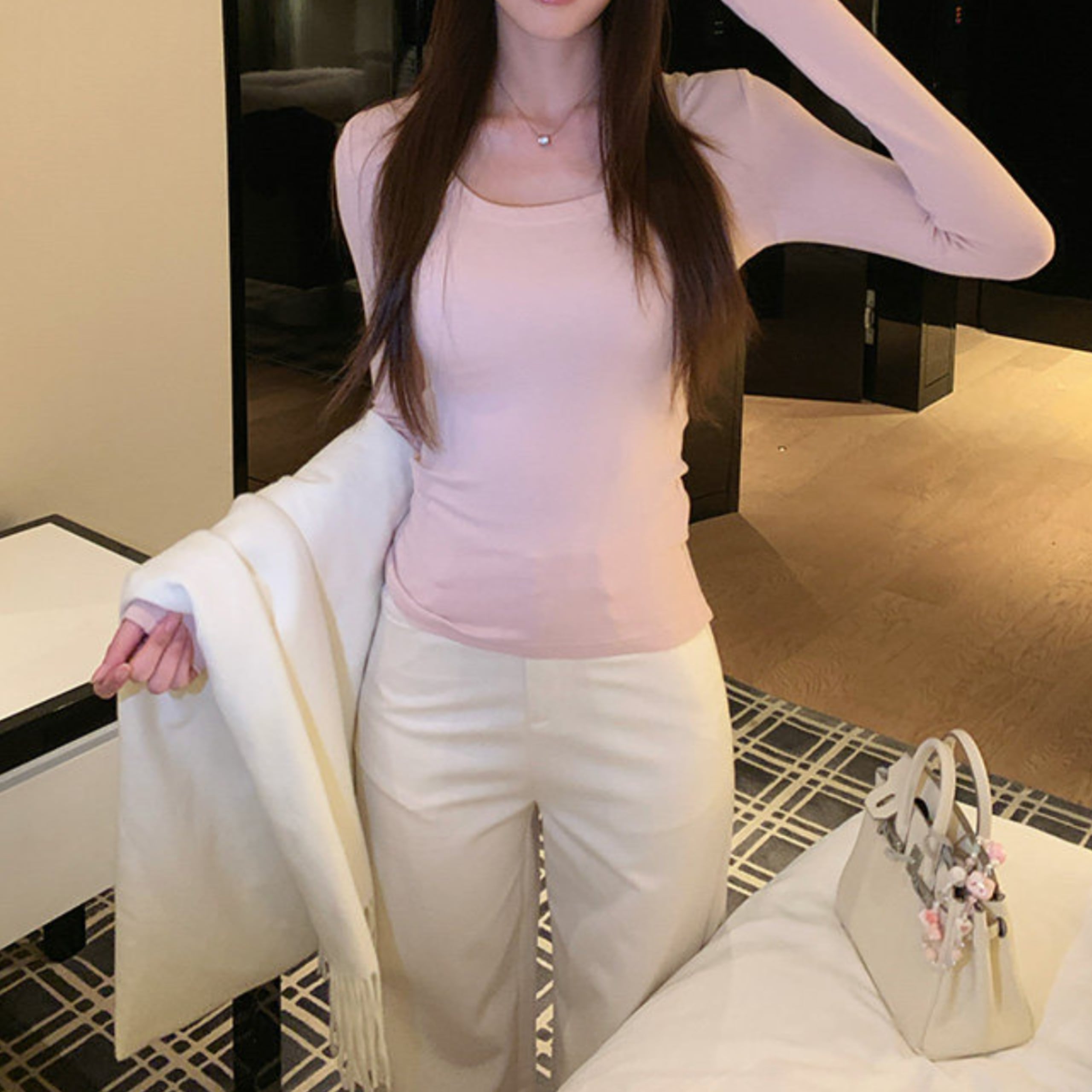 ジャケットやカーディガンのインナーとしても使いやすく、
