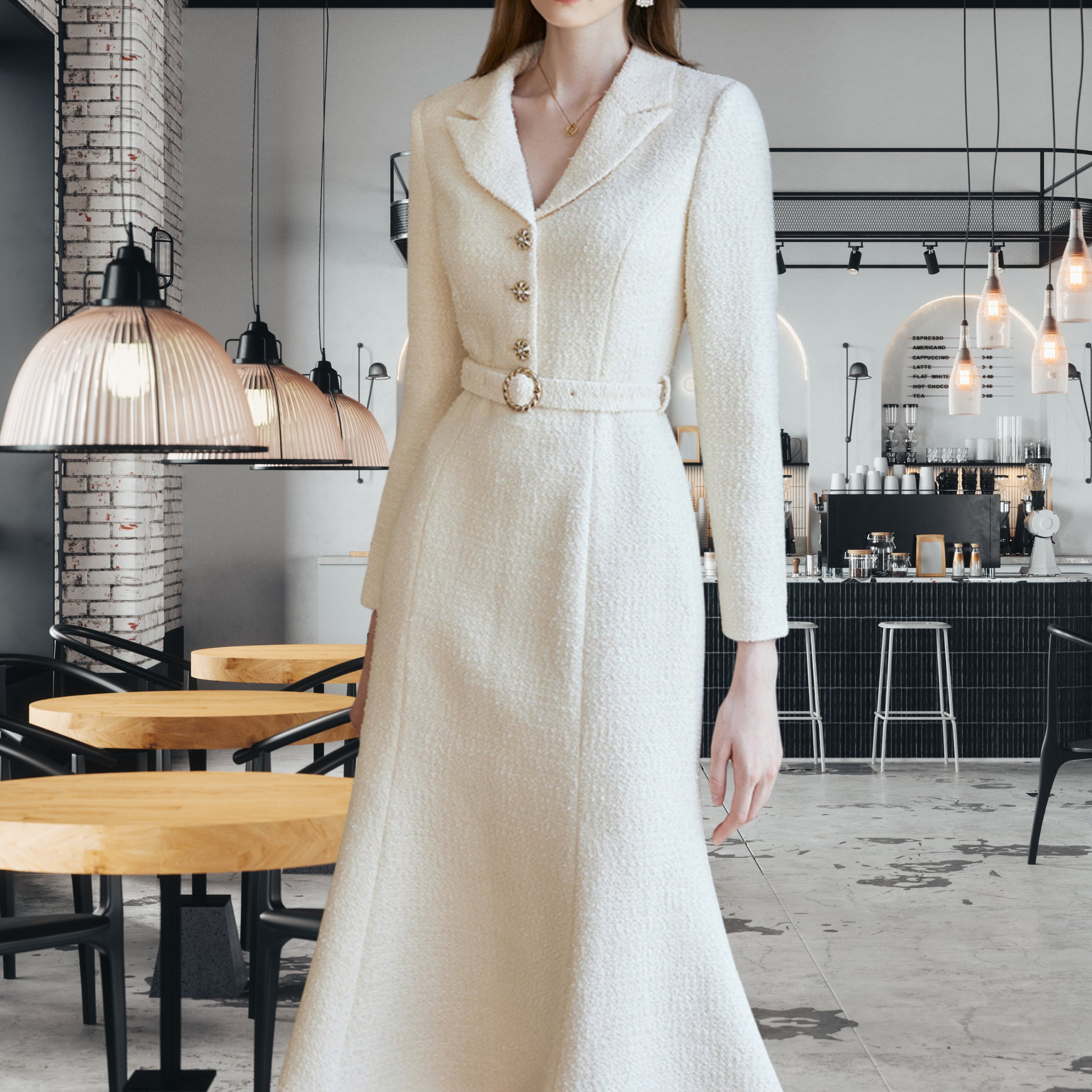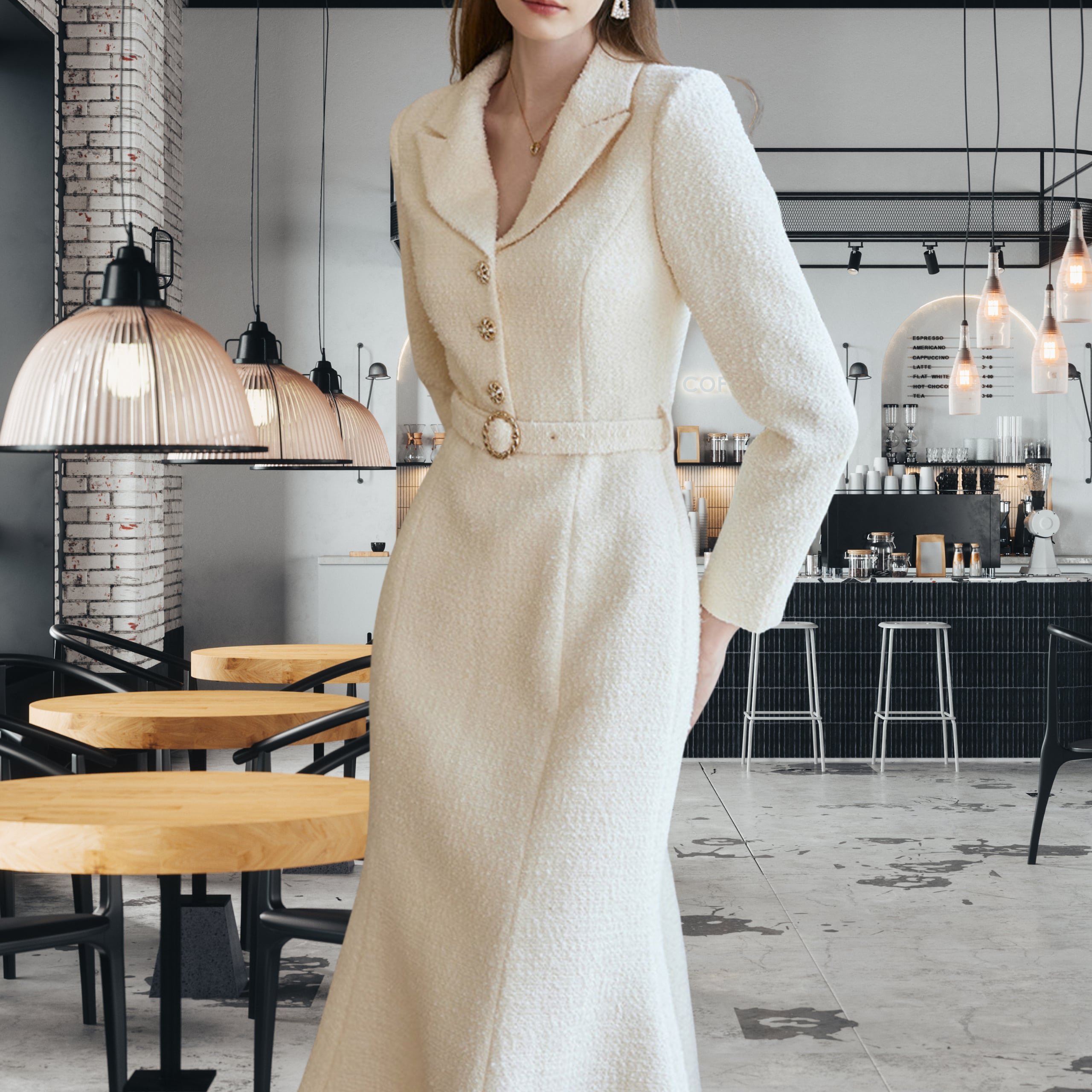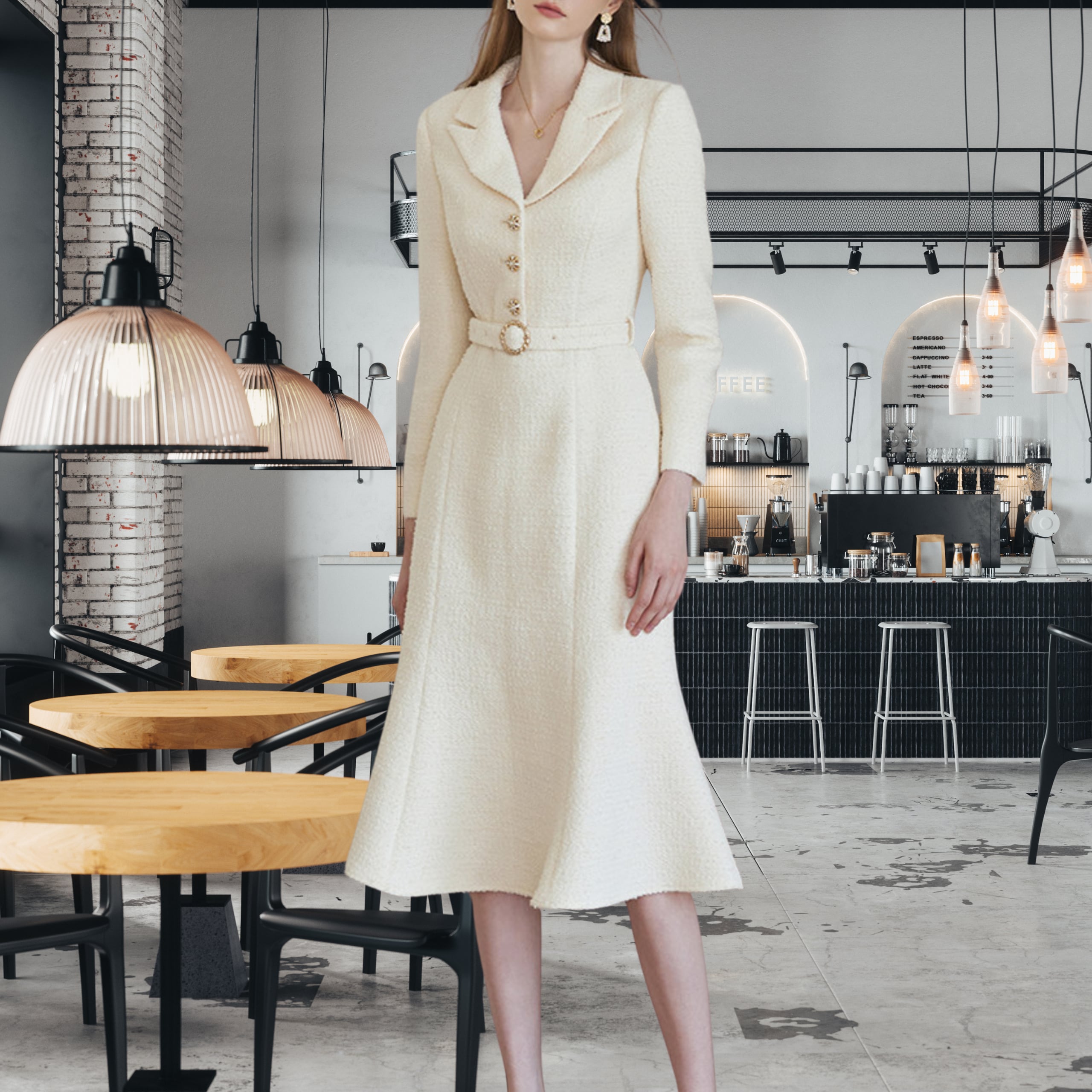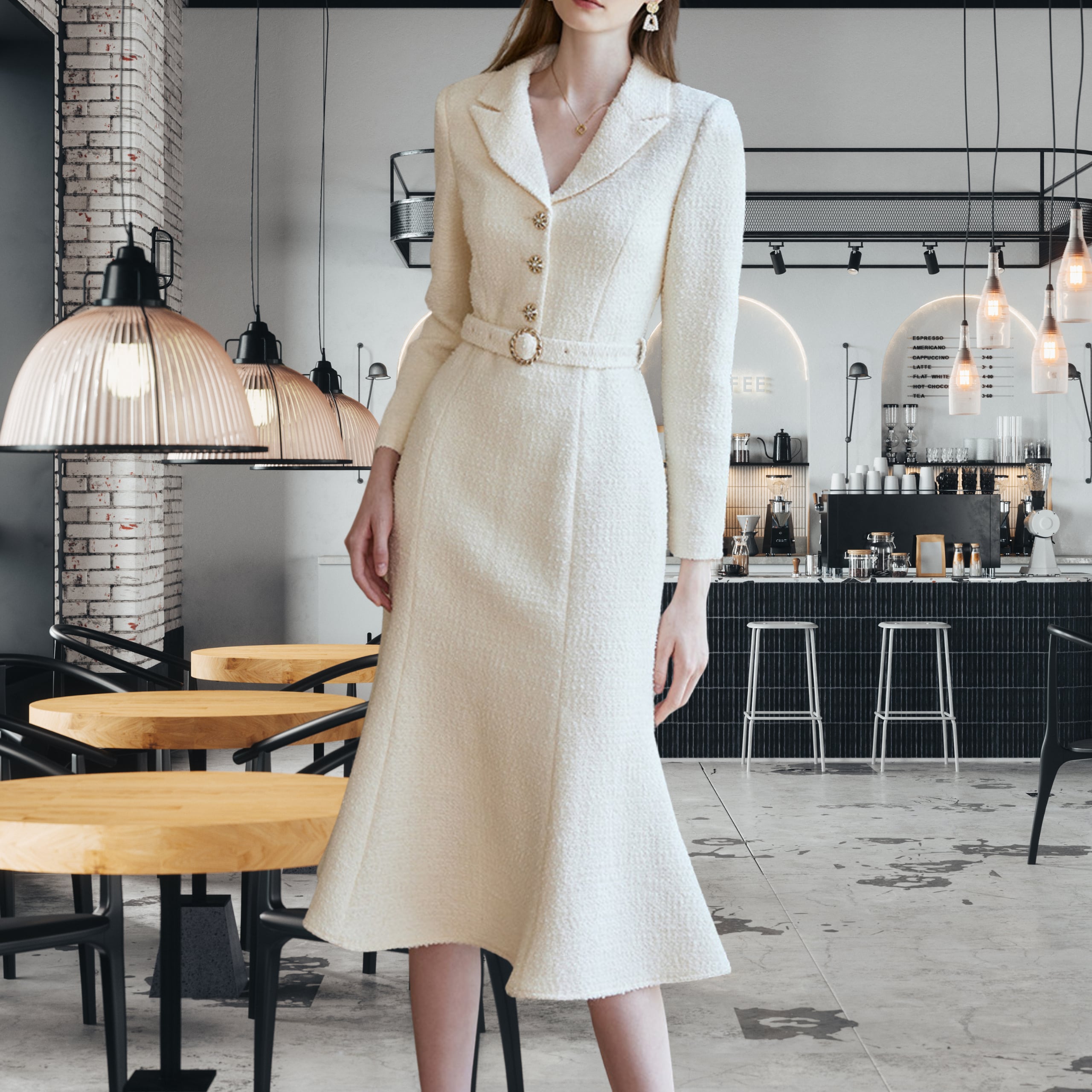 上品なツイード調素材が印象的な、