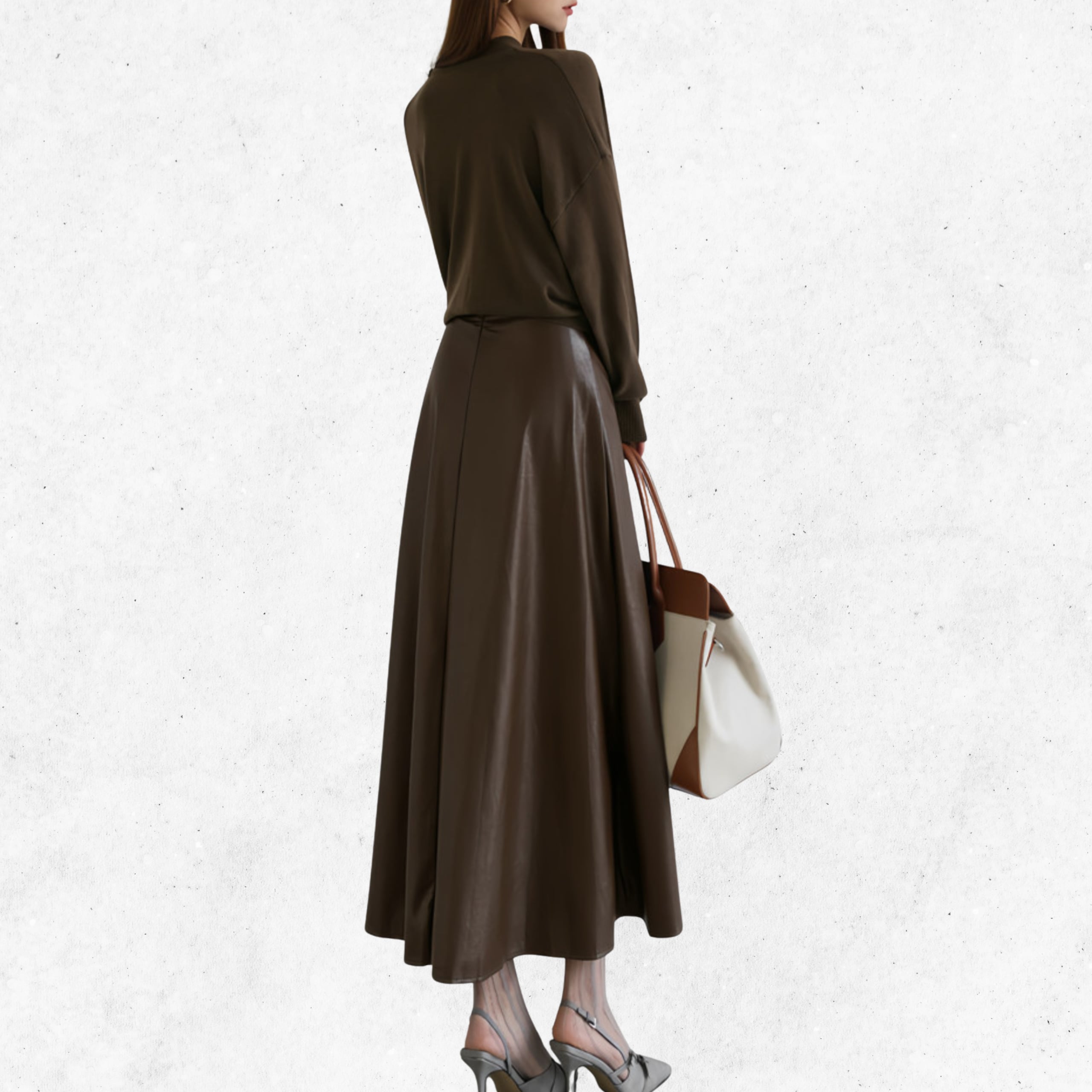 フェイクレザーフレアロングスカート A1199