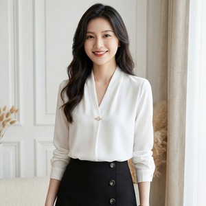 Vネックリボンシフォンシャツ A0407