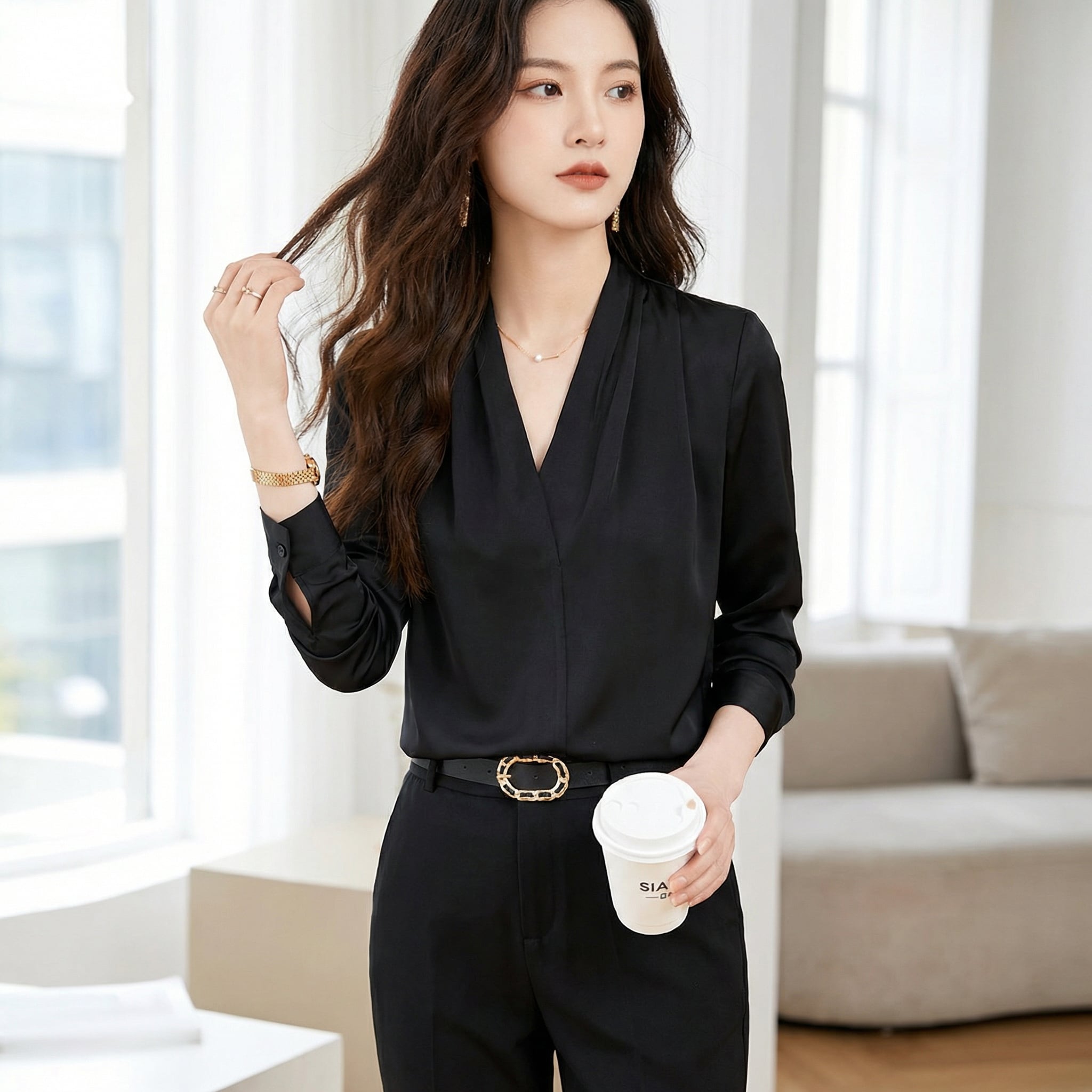 ホワイト(シャツ+ブラックパンツ)/ブラック(シャツ+ブラックパンツ)
