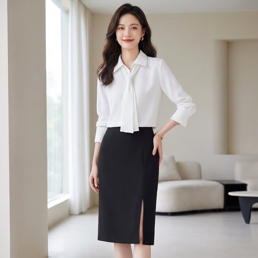ホワイト(シャツ+ブラックスカート)/ライトグリーン(シャツ+ホワイトパンツ)