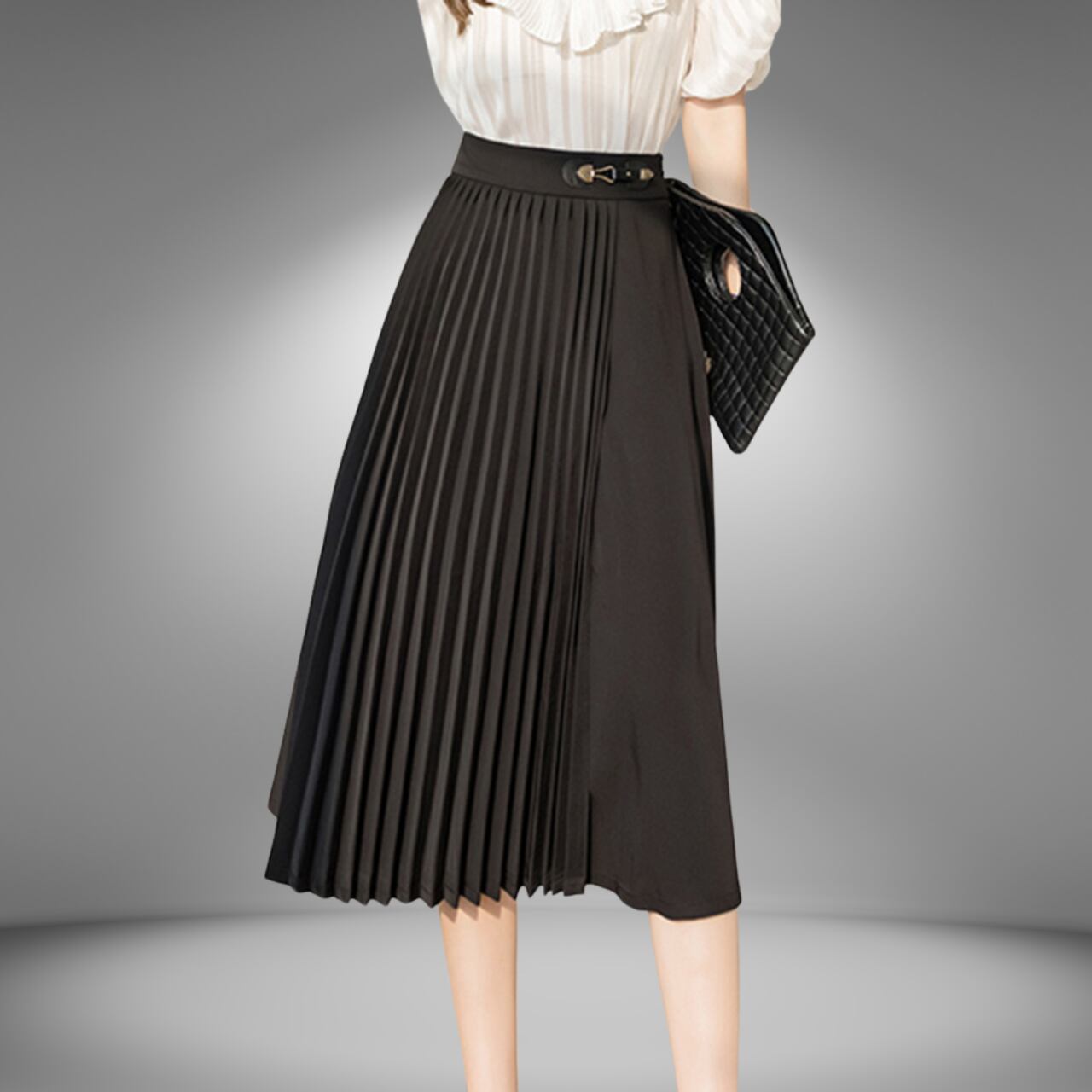 ハイウエストウエストプリーツミディスカート(2color) A0982