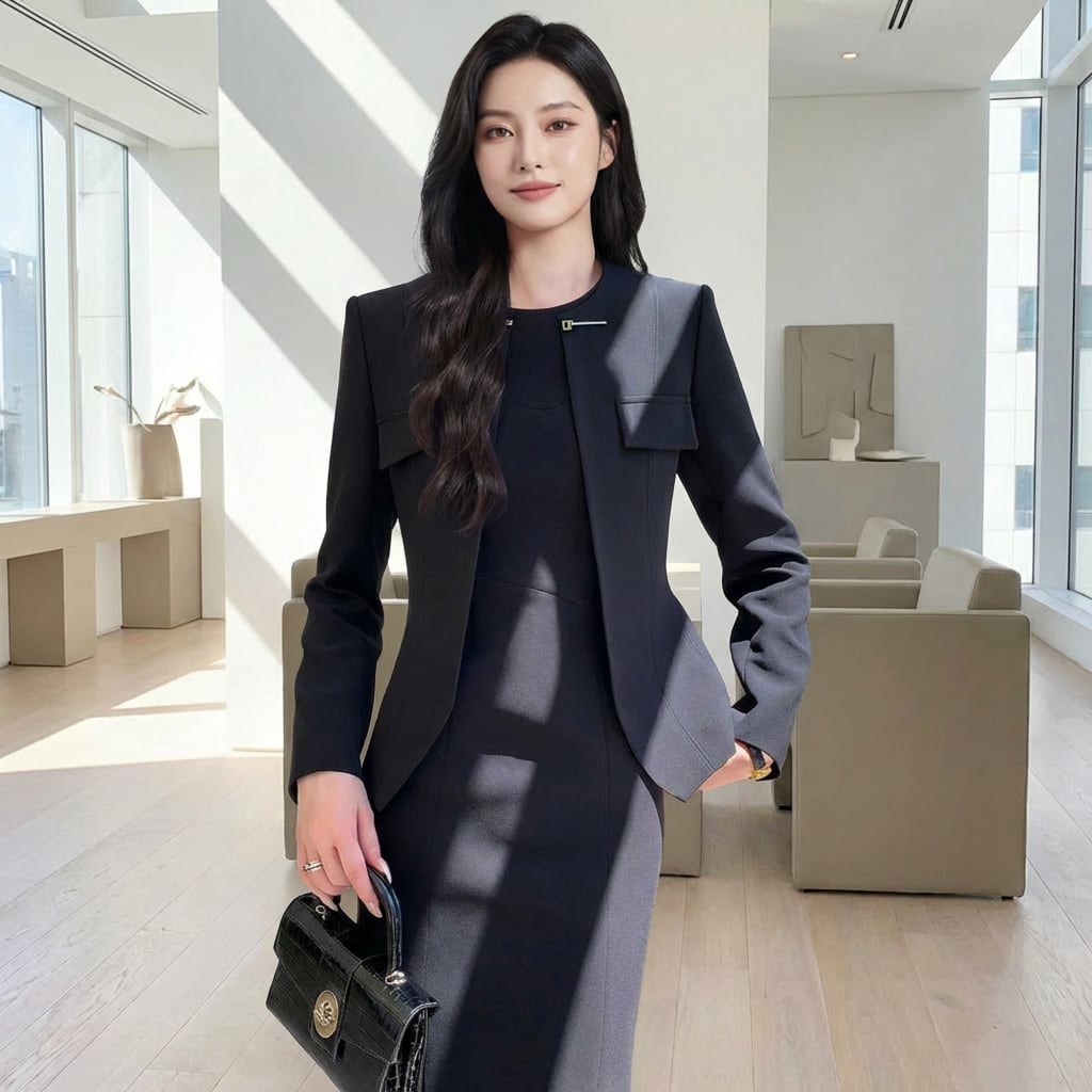 洗練されたシルエットが魅力のセットアップ。ロングスリーブのテーラードジャケットとノースリーブワンピースの組み合わせは、オフィスシーンからちょっとしたお出かけまで幅広く活躍します。上品なデザインで、着るだけで洗練された雰囲気を演出。ワンランク上の着こなしを叶えたい方におすすめです。